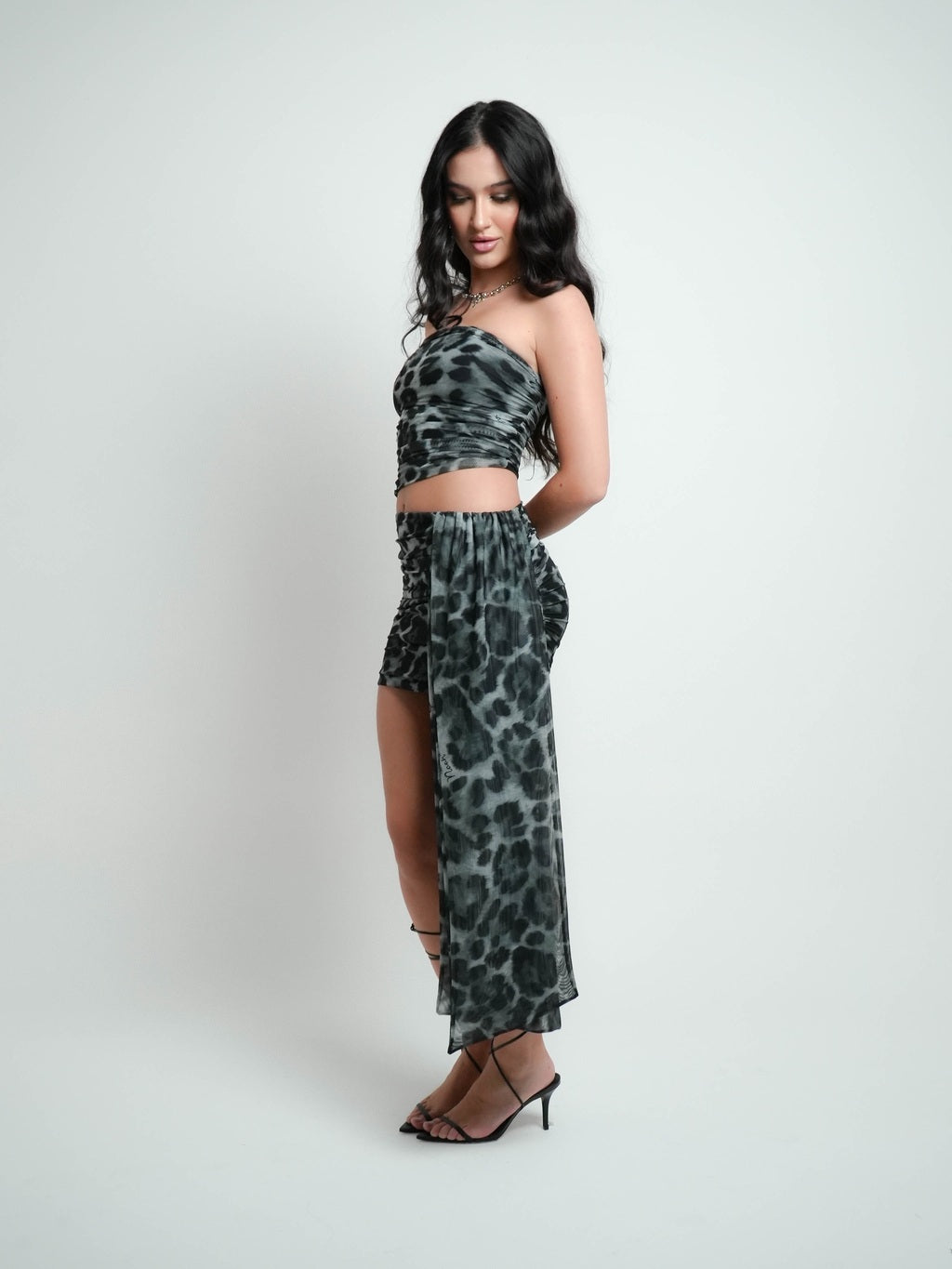 Vestido Tule Wild: Ousadia e exclusividade traduzidas em um só look! Este vestido tomara que caia surpreende com decote na barriga e uma delicada faixa em tule, criando um visual sensual e sofisticado. Sua estampa 100% autoral de onça garante originalidade e atitude, perfeita para quem deseja se destacar em qualquer ocasião.