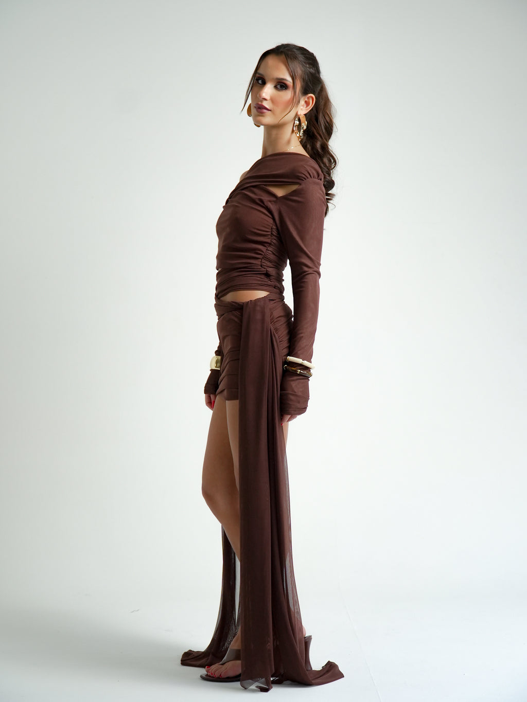Esta blusa é confeccionada em tule, o destaque fica para o design transpassado com manga longa, perfeito para composições versáteis — do casual ao sofisticado. A faixa em tule permite diferentes formas de amarração, valorizando sua criatividade e garantindo ajuste perfeito ao corpo.