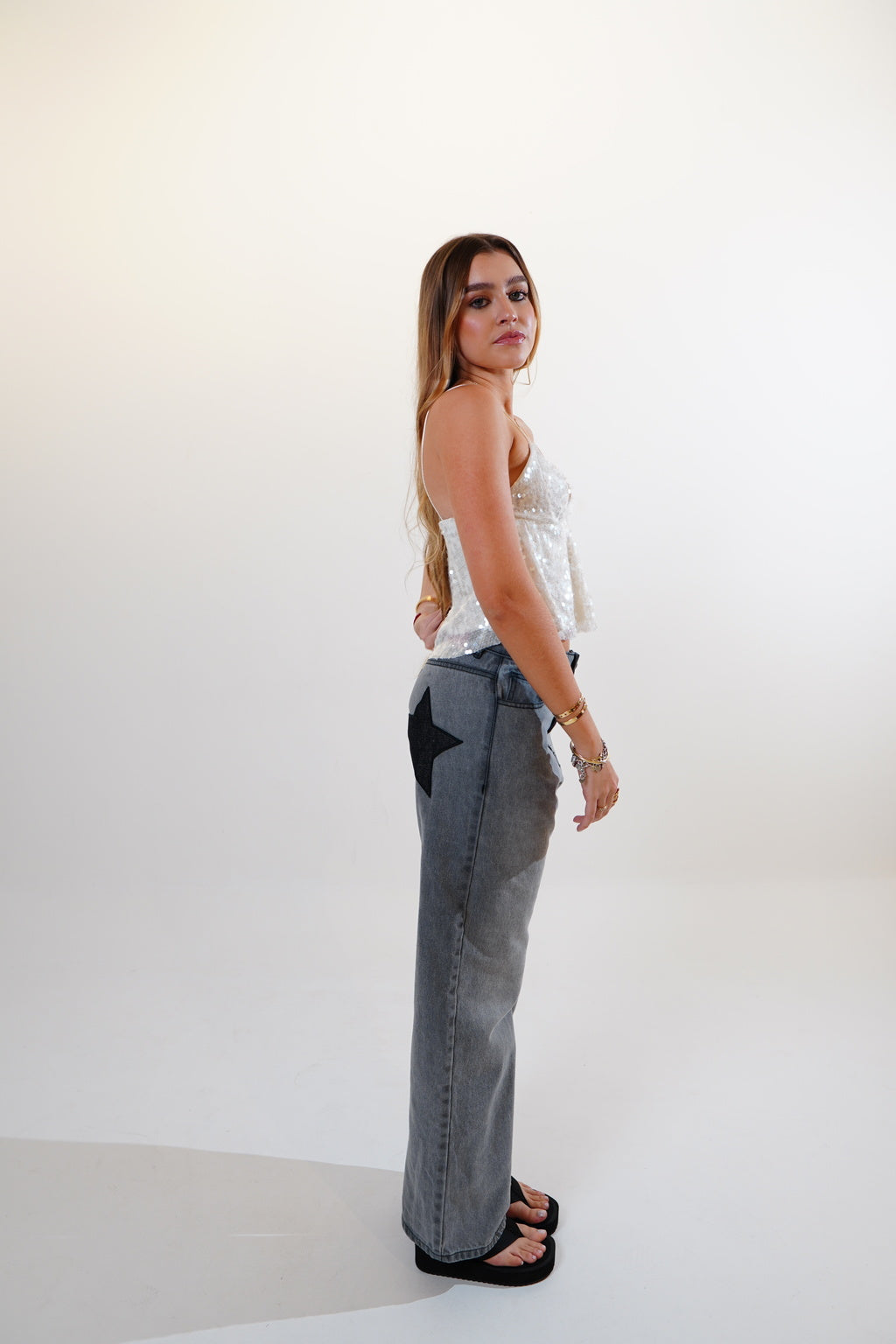 Calça Jeans Bella: Para quem busca um visual descolado e autêntico, a Calça Jeans Bella é a escolha ideal. Com um design reto e patches de estrela, esta peça oferece um estilo único e moderno, perfeito para destacar-se em qualquer ocasião.