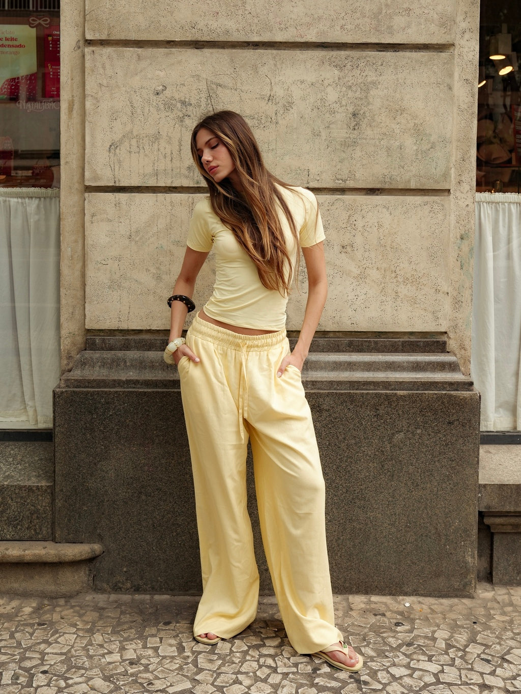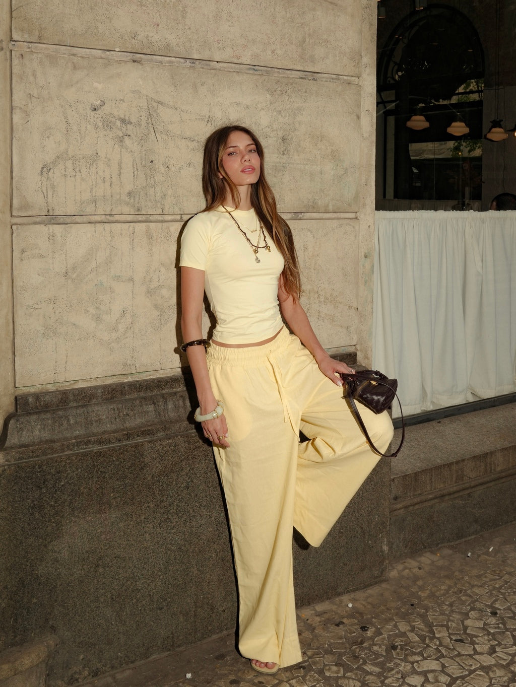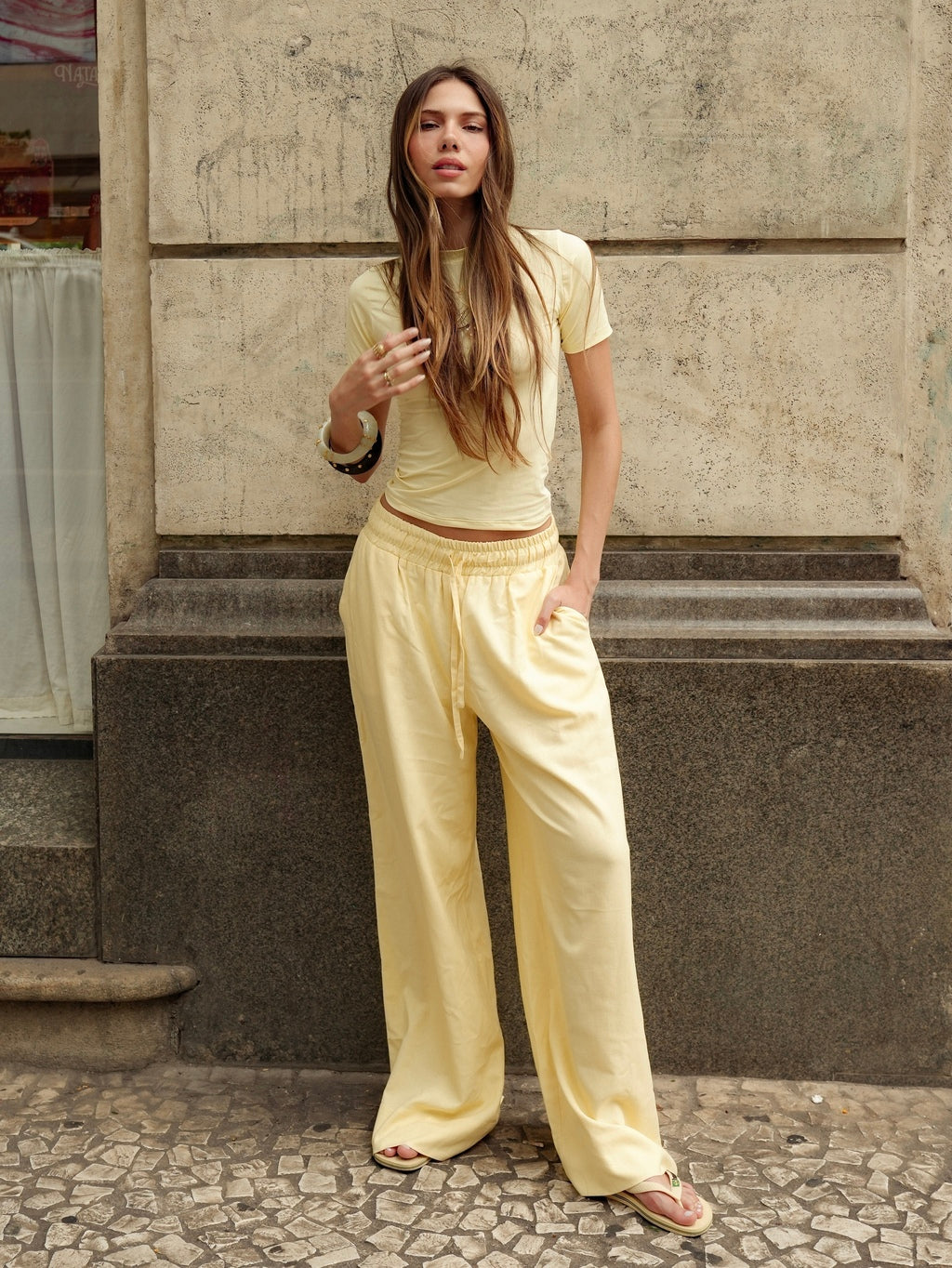 Descubra a calça de linho mais icônica de todas! Nossa primeira criação, a Calça Linho, é a definição perfeita de estilo e frescor para os dias quentes. Com uma modelagem wide leg, ela valoriza a silhueta e proporciona liberdade de movimento e elegância em cada detalhe.