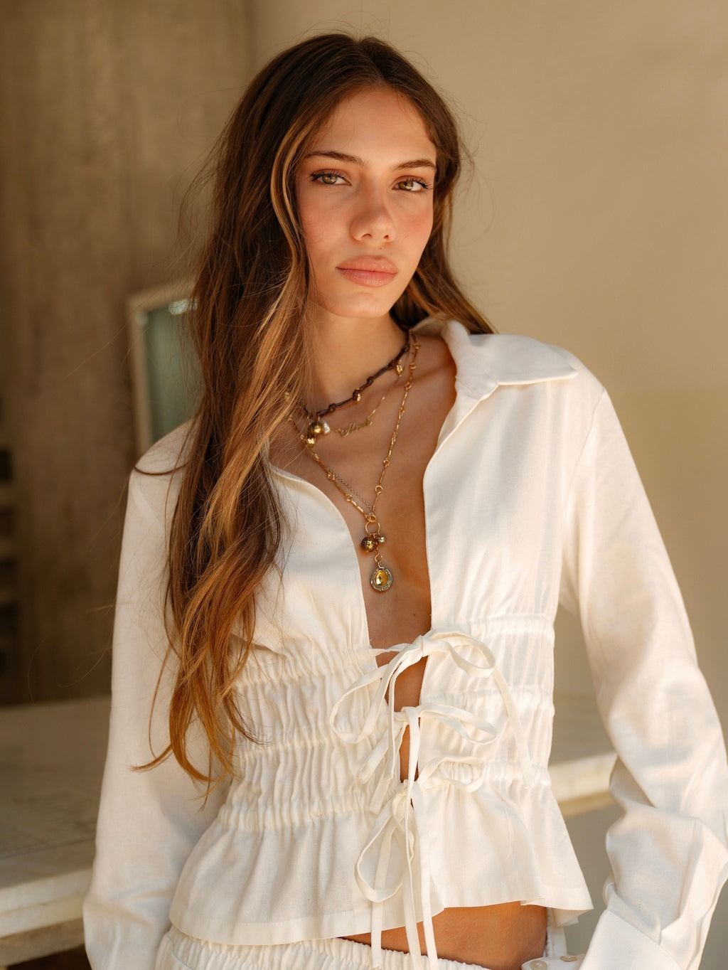 Descubra a Camisa Caraíva Linho, a peça que vai conquistar seu coração nesta temporada! Com uma modelagem inovadora e exclusiva, essa camisa foi criada para valorizar a silhueta feminina de forma única. O franzido na cintura remete ao charme dos corsets, proporcionando estrutura e realce à região, enquanto as amarrações frontais trazem um toque sexy e descontraído, perfeito para os dias quentes.