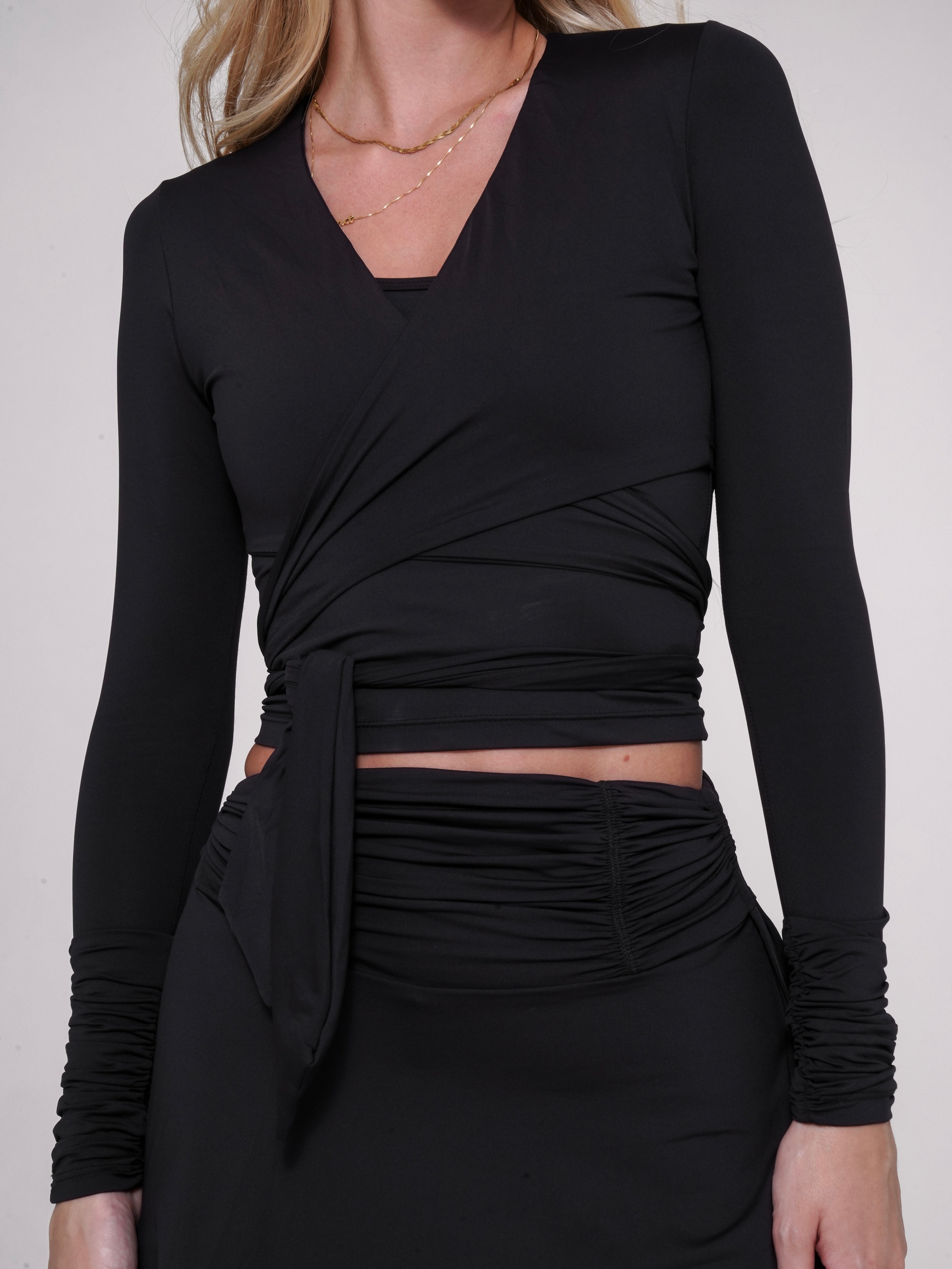 As mangas longas com elástico trazem um leve franzido, adicionando um toque feminino e sofisticado à peça. Confeccionado em tecido macio e confortável, o cropped proporciona liberdade de movimento, sendo ideal para atividades como yoga, pilates, alongamentos ou para um visual esportivo elegante no dia a dia.