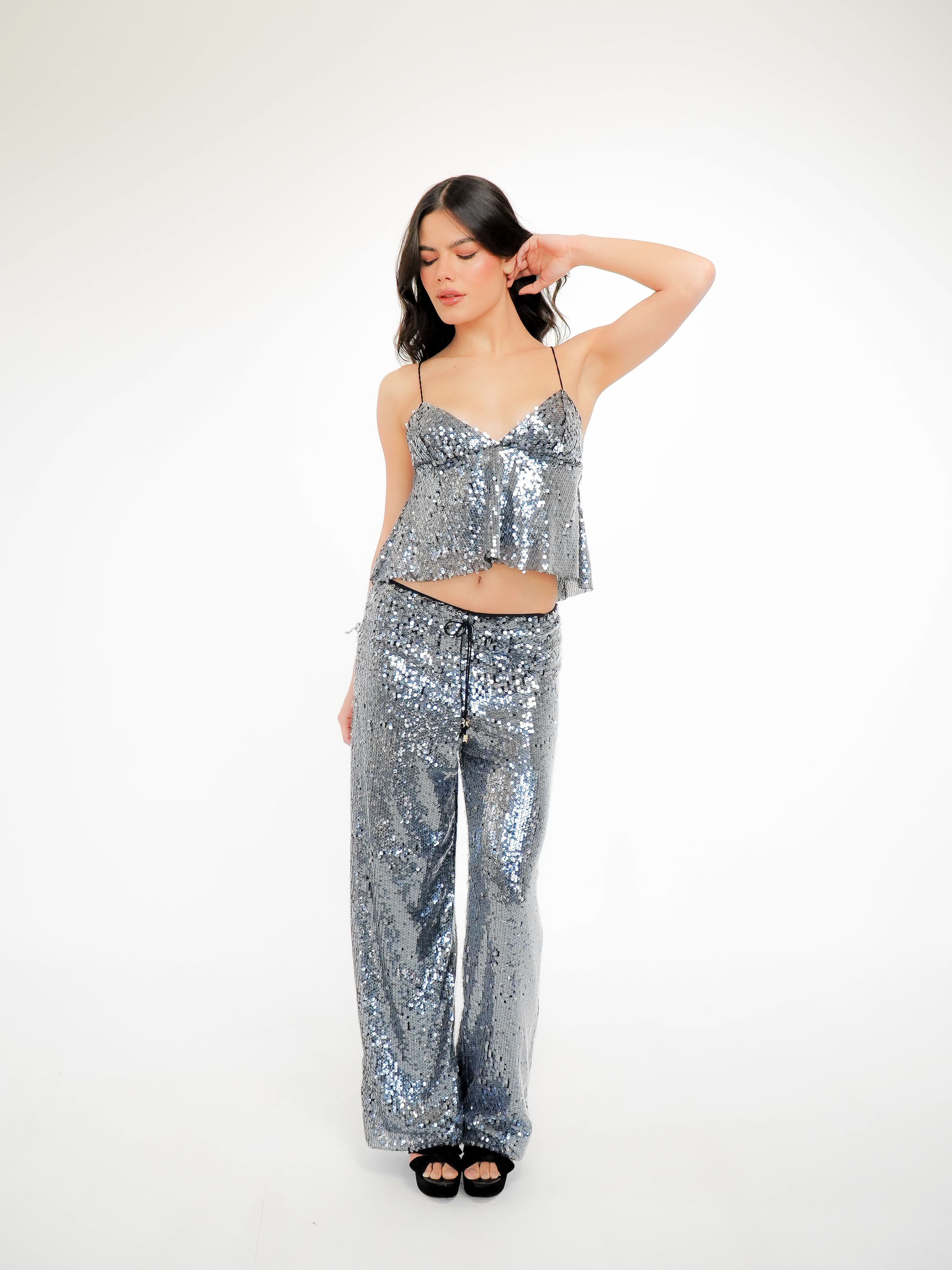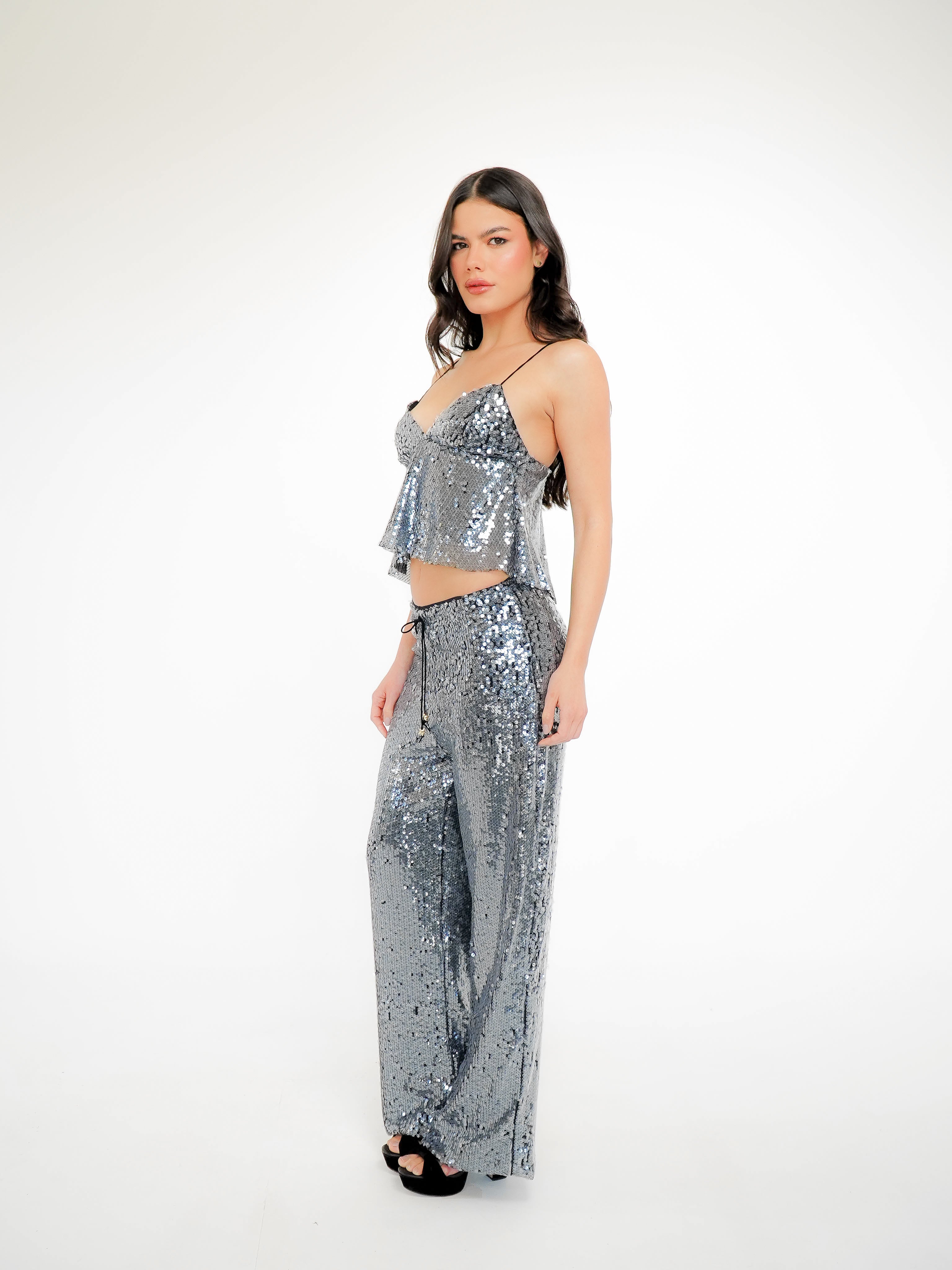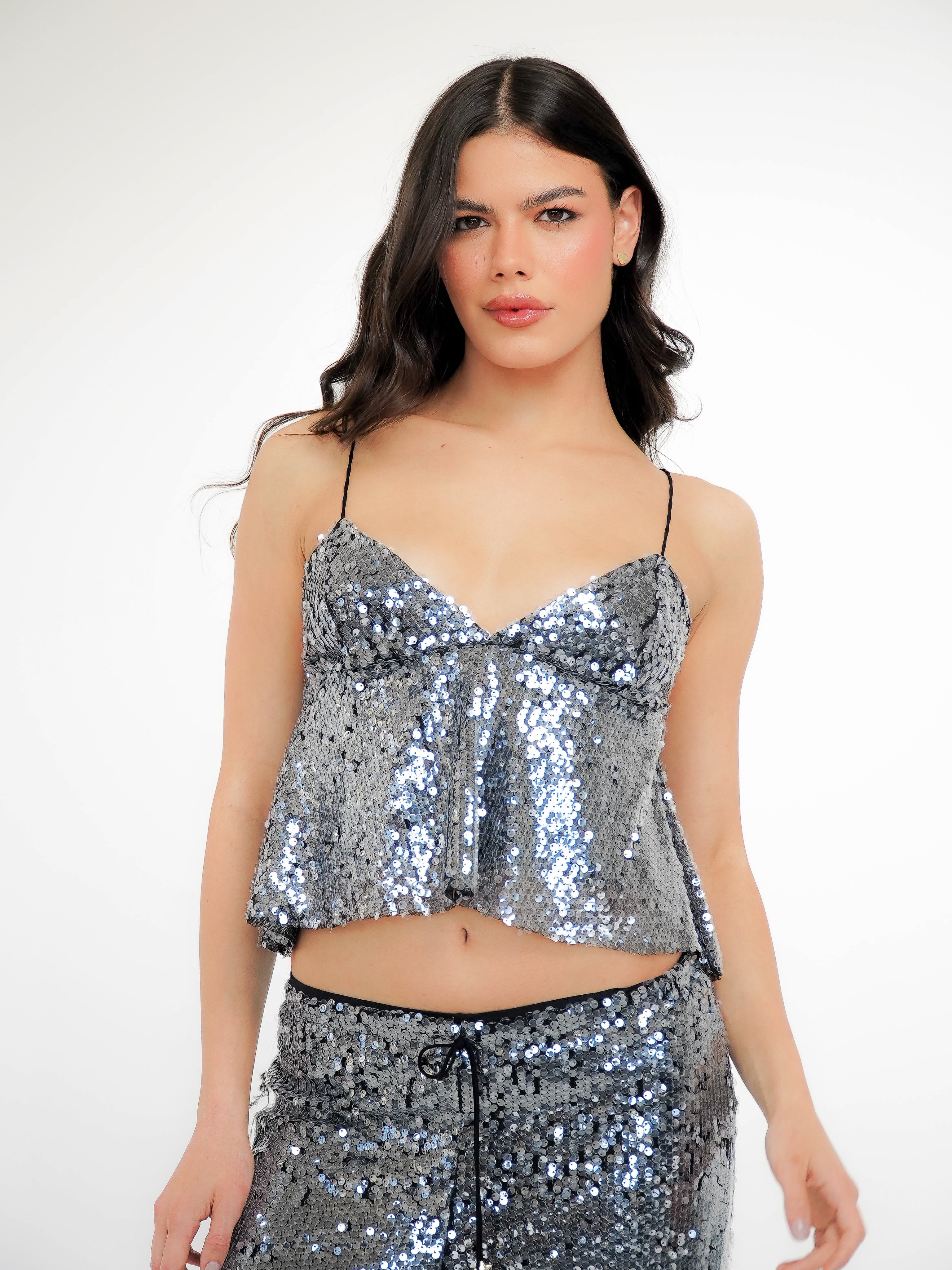 Regata Paetê Ultra Glow: A peça essencial para quem deseja se destacar com glamour e estilo em qualquer evento. Ideal para brilhar, esta regata é confeccionada com nosso exclusivo tecido paetê, que proporciona uma aparência icônica de molhado.