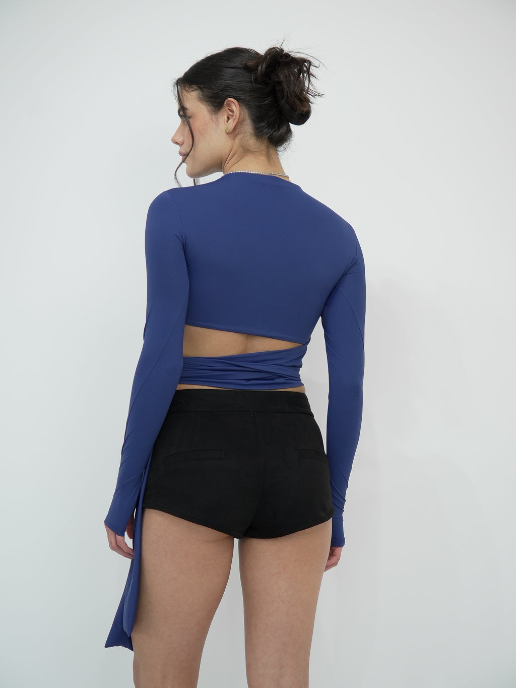 Descubra o Top Amarração, o cropped de manga longa que eleva seu estilo com sofisticação e conforto. Com dedeira nas mangas e faixa embutida para diversas amarrações, este top permite criar looks únicos, adaptando-se perfeitamente ao seu corpo.