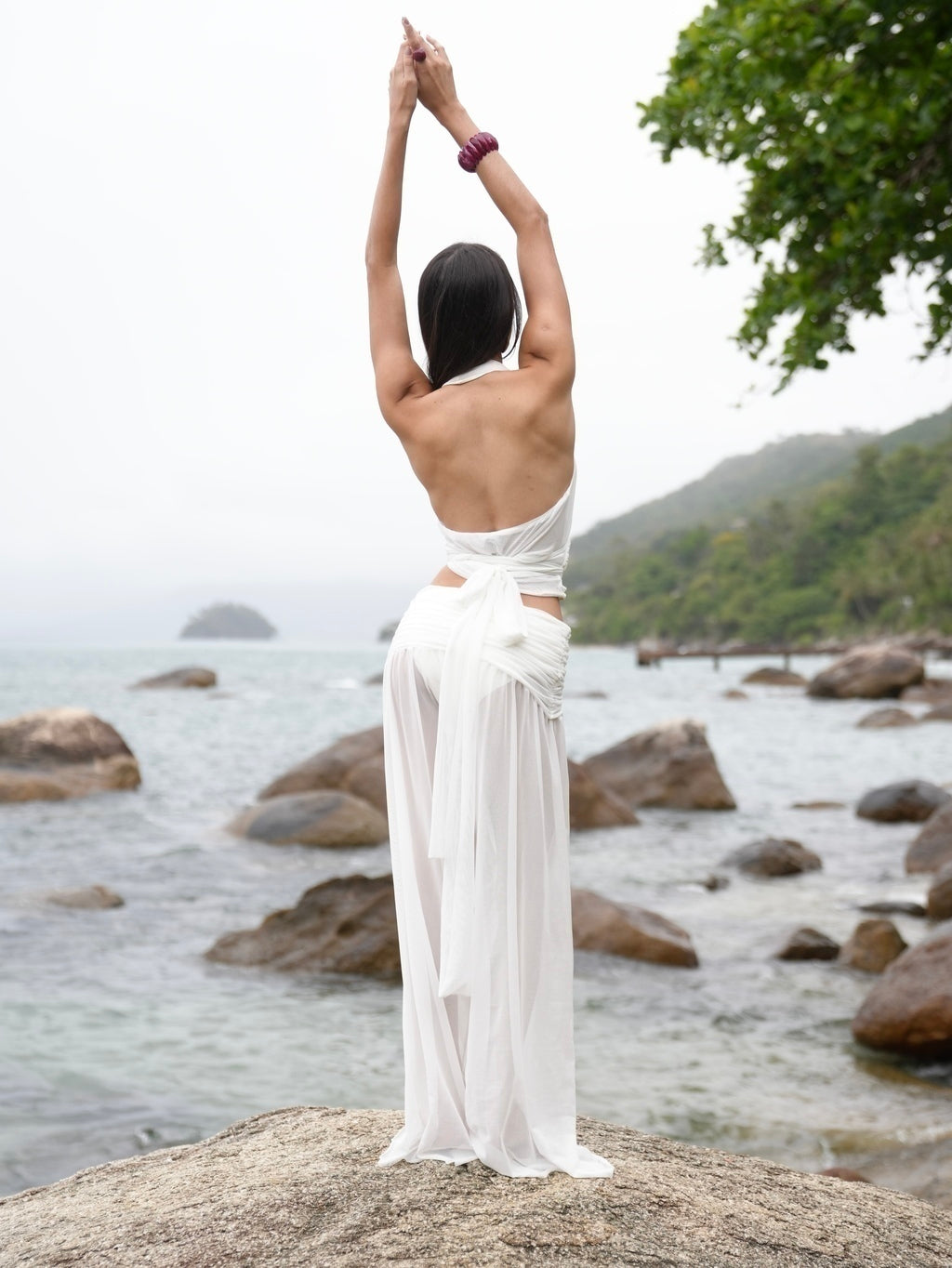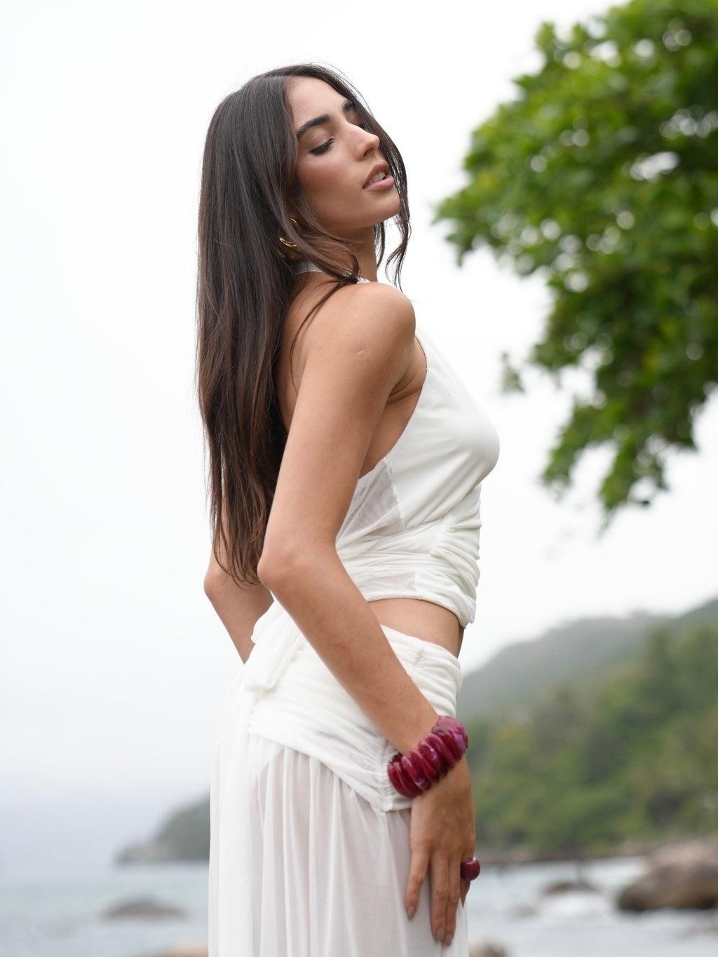Confeccionado em tule de alta qualidade, esse top possui forro no mesmo tecido das peças básicas, garantindo conforto com toque geladinho e proteção UV – ideal para dias de sol e momentos ao ar livre. A modelo veste tamanho PP.