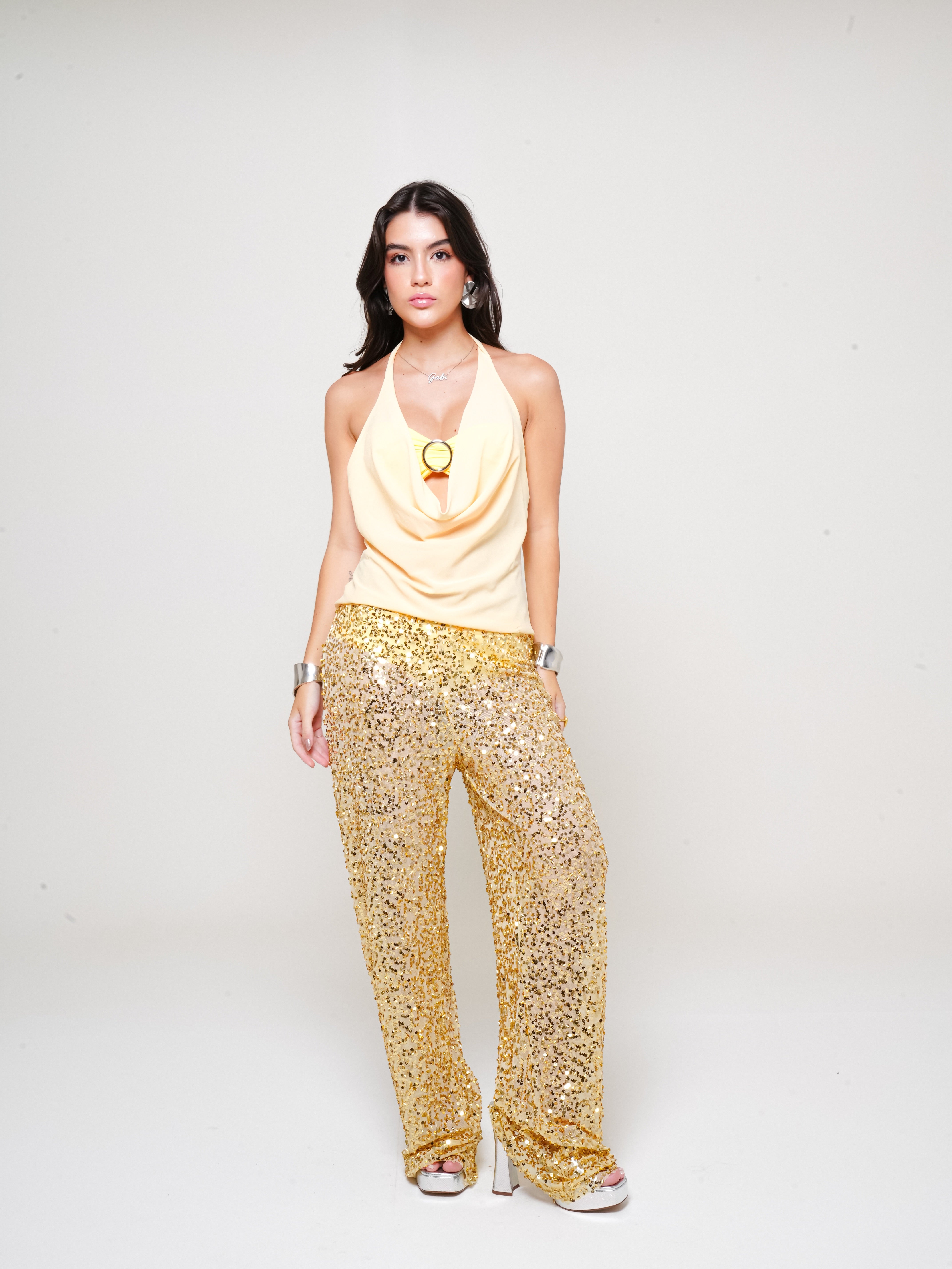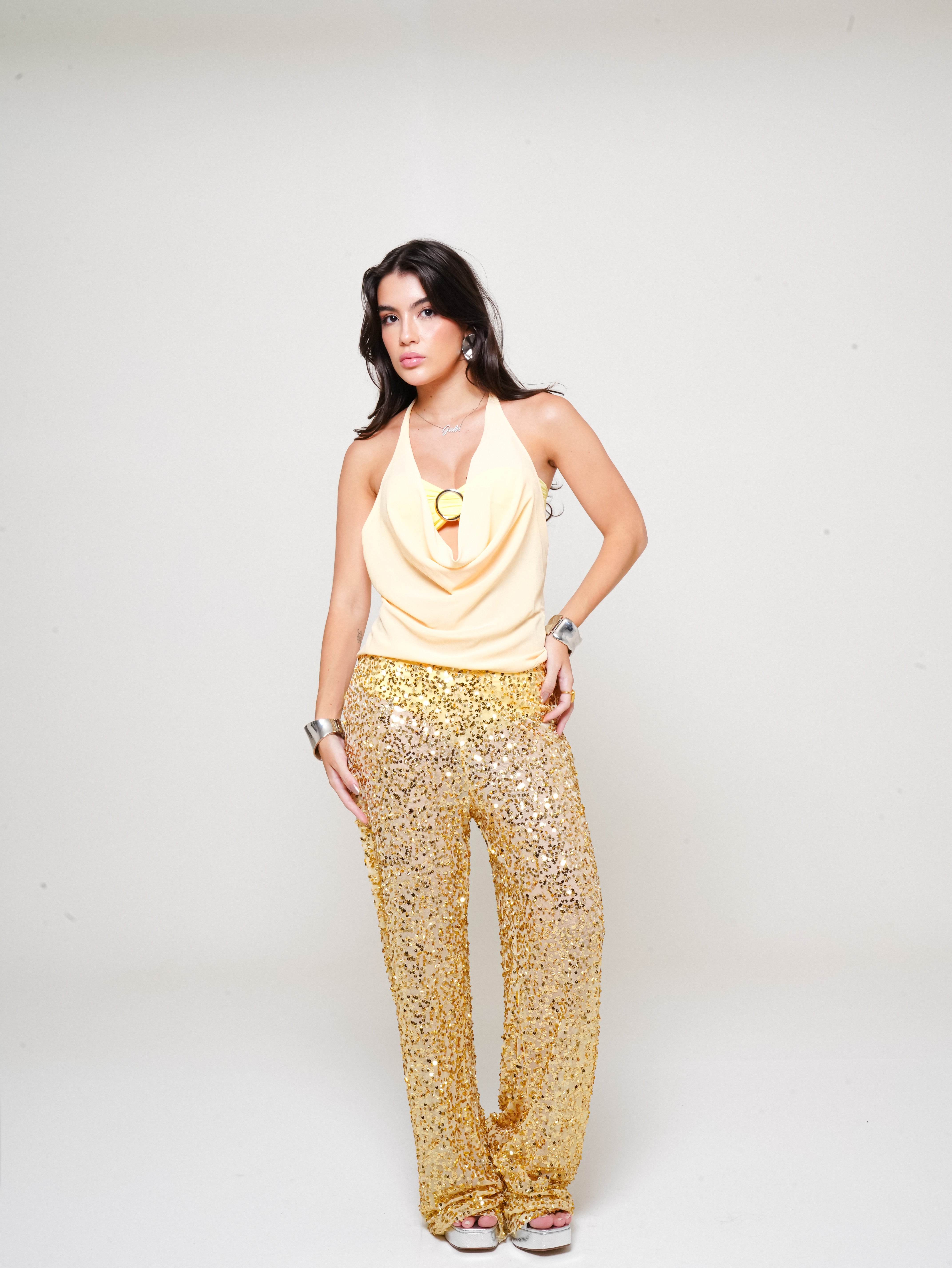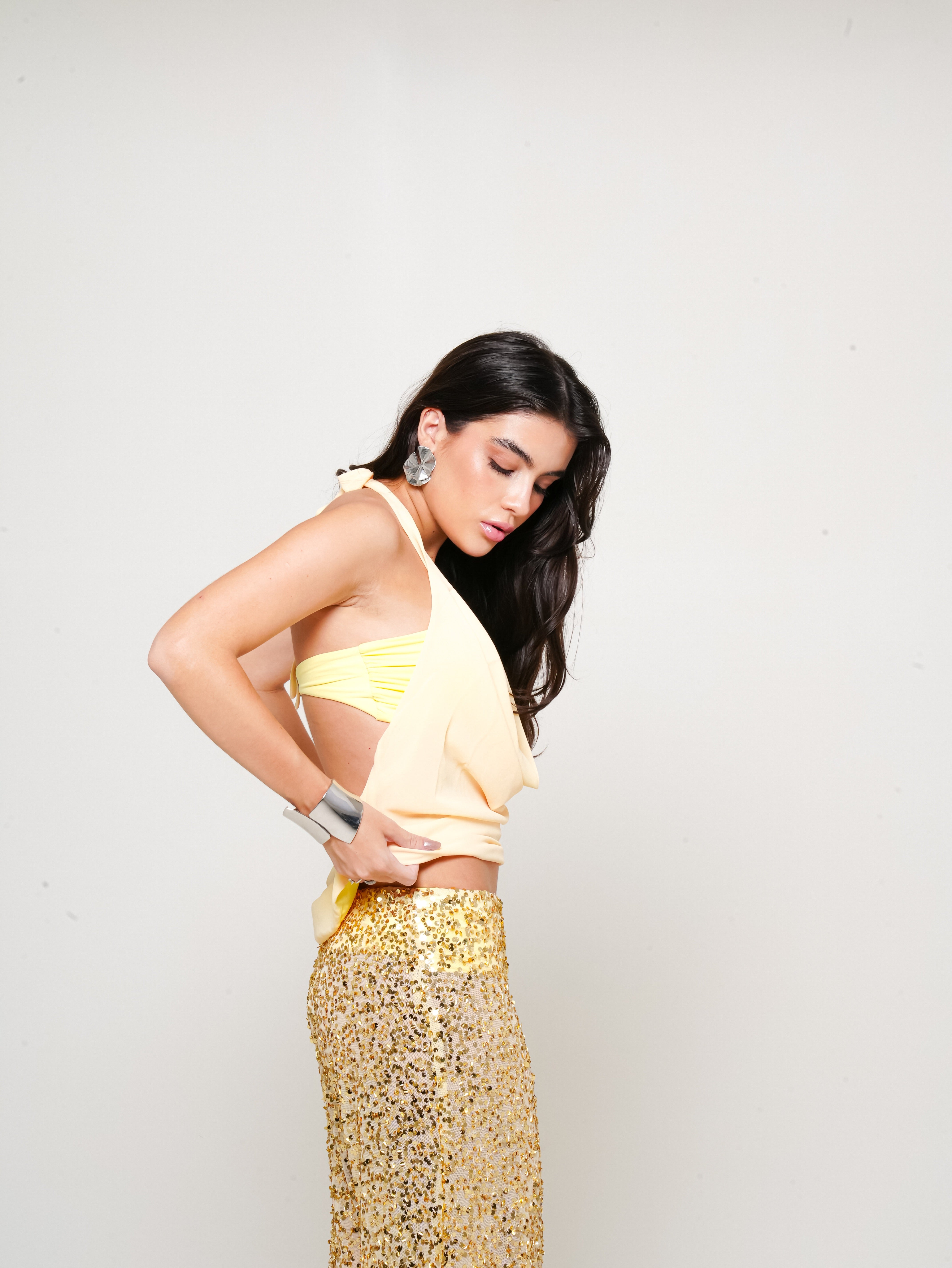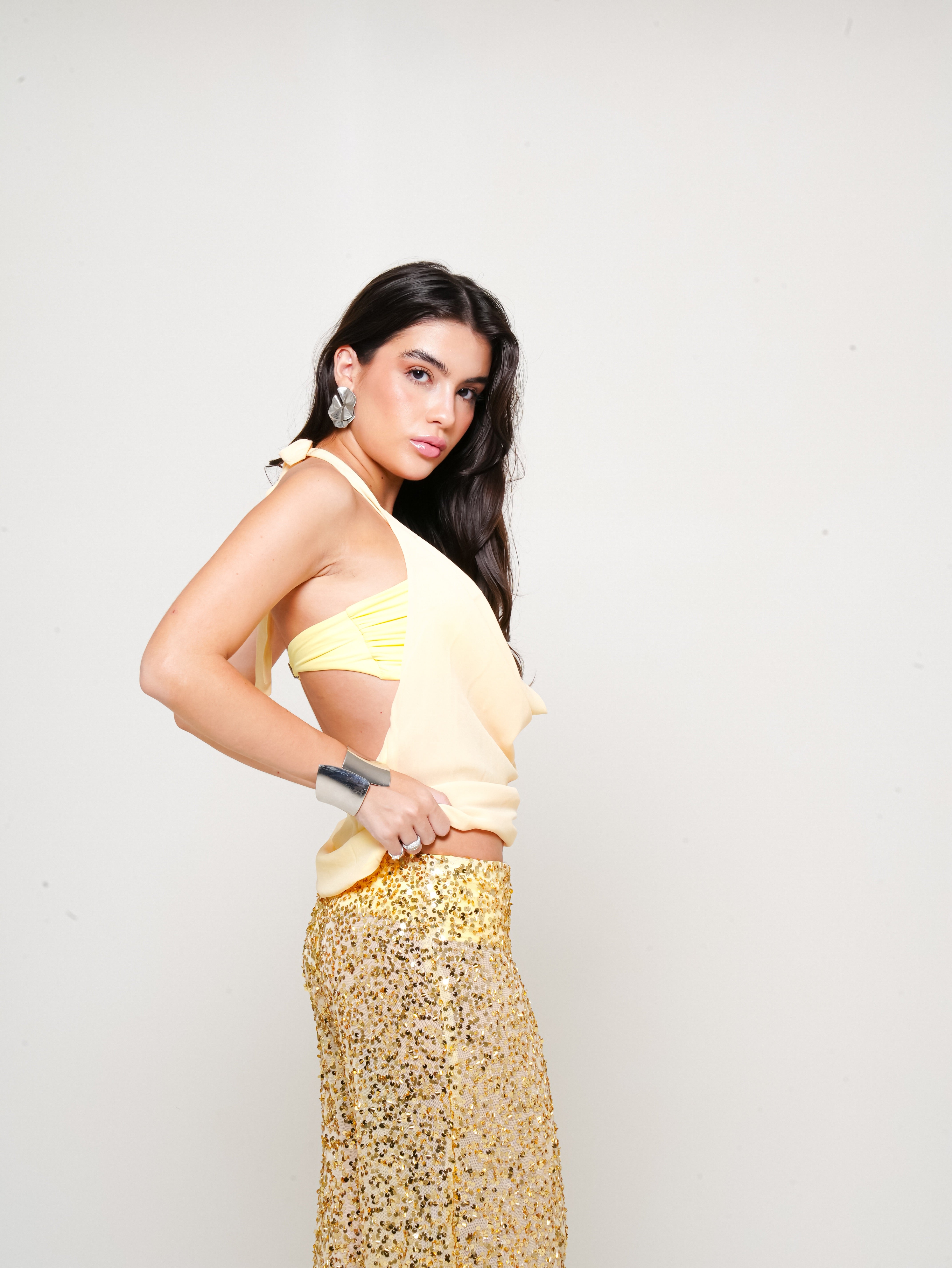 Confeccionado em chiffon, possui caimento leve e fluido. A peça acompanha top interno em poliamida com aviamento, garantindo conforto, segurança e melhor acabamento ao vestir.