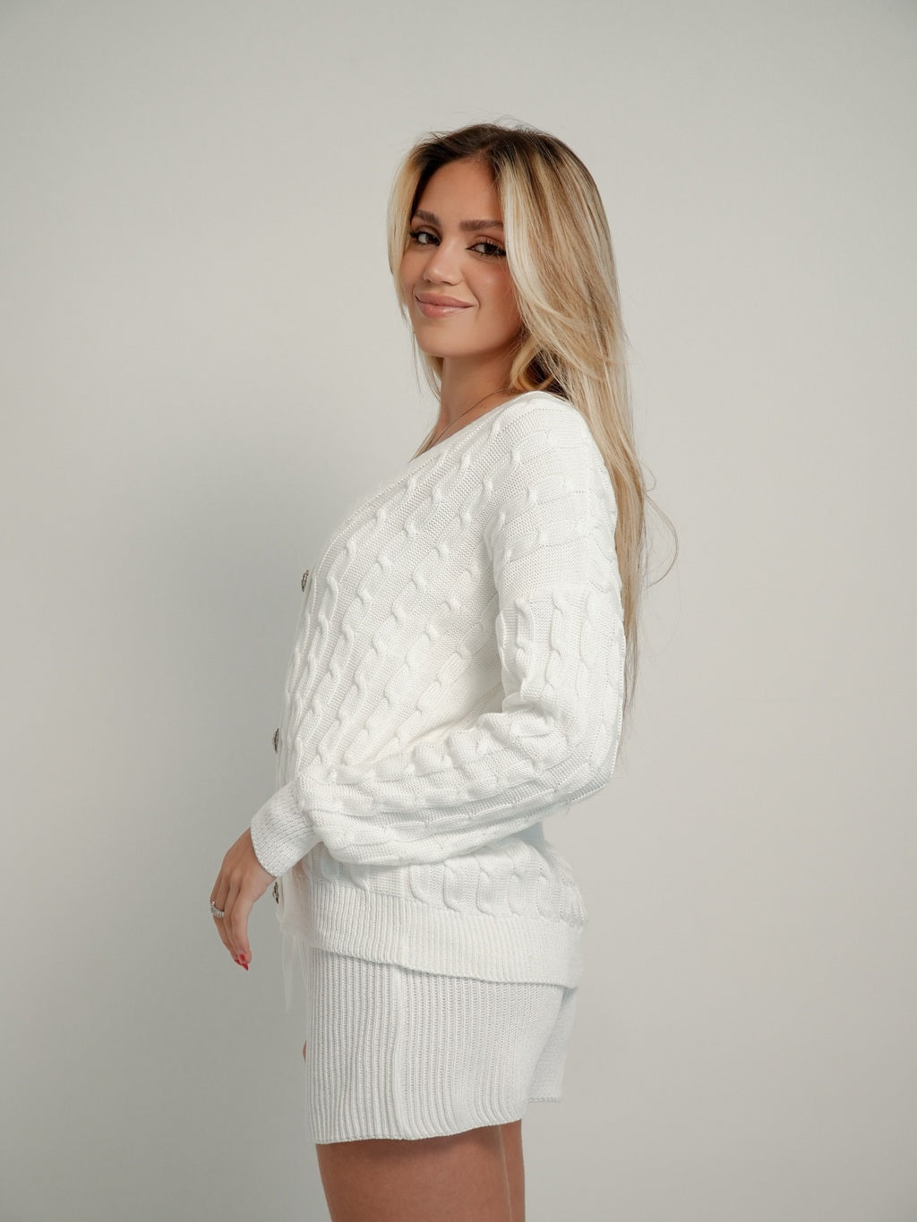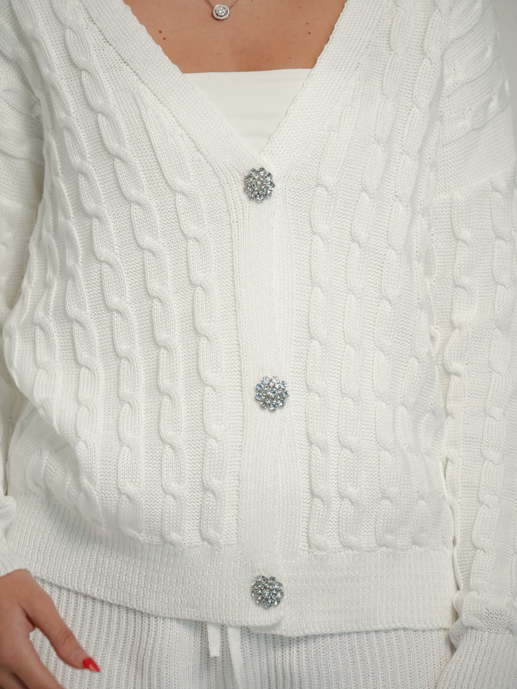 Se você procura o cardigan mais fofo que existe, acaba de encontrar. O Cardigan Sophie traz um toque especial com seus três botões personalizados em brilho, tornando cada detalhe único e sofisticado. Super quentinho, ele é perfeito para dias frios e ainda garante estilo em qualquer ocasião.