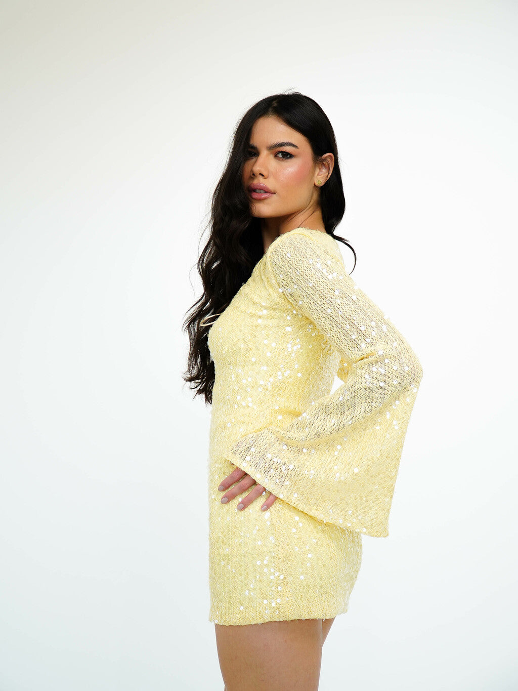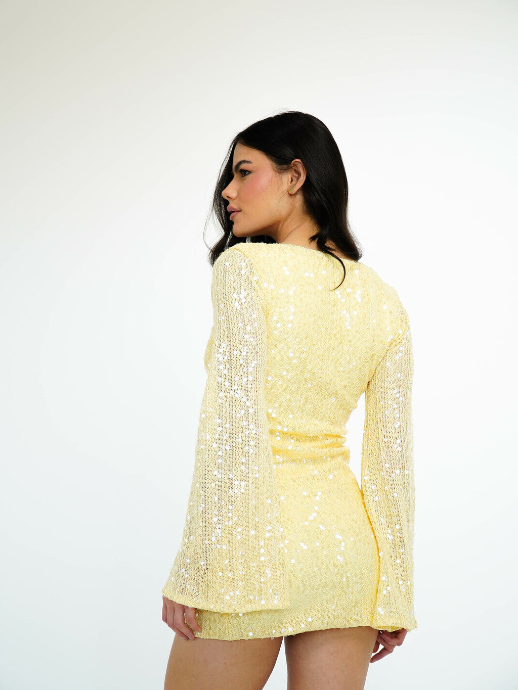 Vestido Bordado Paetê Decote Duplo: A peça essencial para quem deseja unir sofisticação e modernidade! Este vestido é confeccionado em tricot paetê, proporcionando um brilho sutil e elegante ao look. O decote no busto e as mangas abertas trazem um toque de sensualidade, enquanto a versatilidade de poder usá-lo dos dois lados oferece mais opções de estilo.