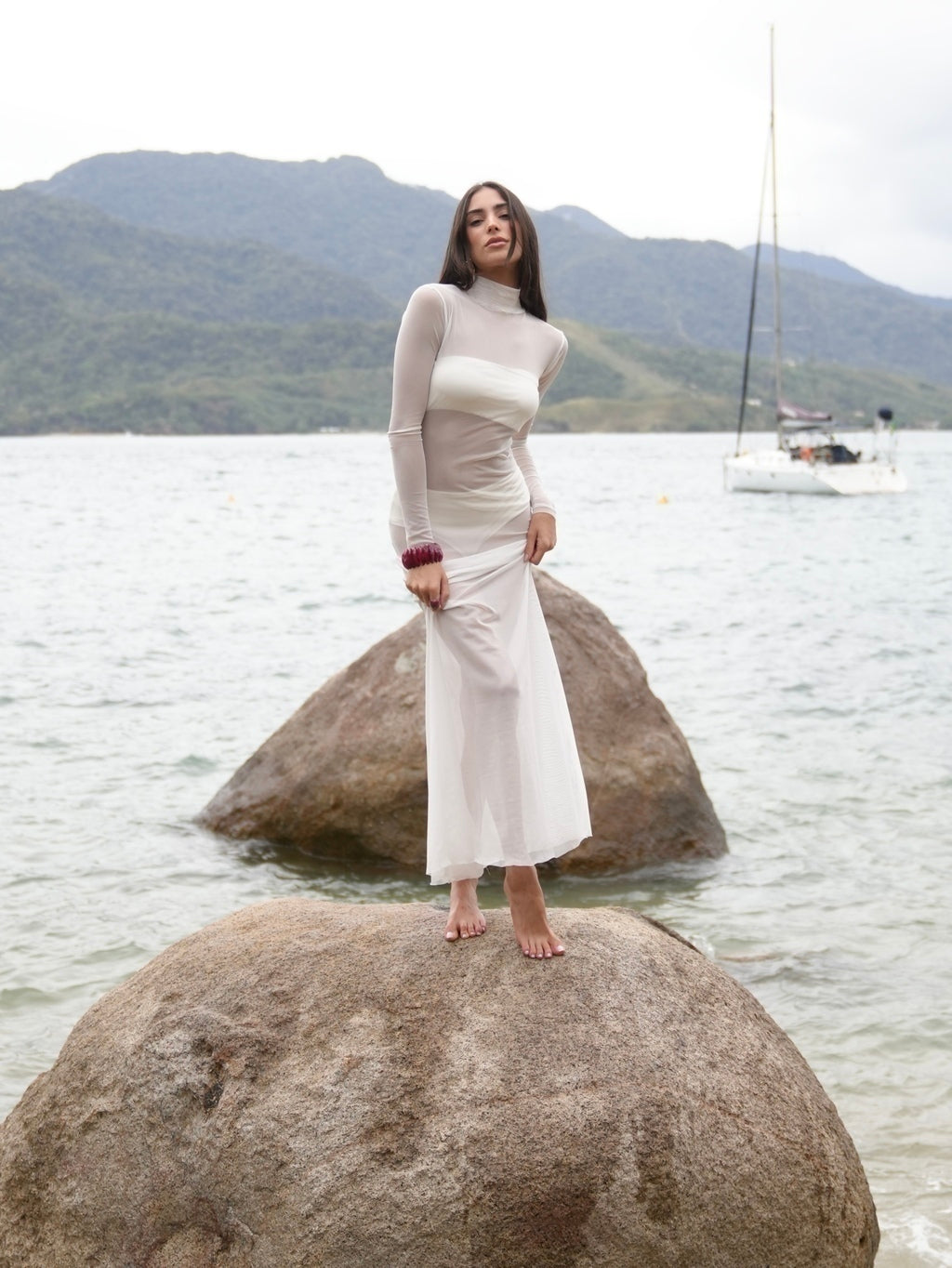 Descubra o poder do Vestido Manga Longa Tule Longo! Com gola levemente alta e silhueta ajustada, este vestido valoriza suas curvas com elegância. O destaque fica por conta da abertura estilo sereia, trazendo sofisticação e movimento para o seu visual.